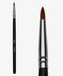 Lápis (E30) – Este pincel pode ter várias funções como marcar o côncavo dos olhos e esfumar a sombra/lápis rente aos cílios superiores e inferiores. Adoro esse efeito.