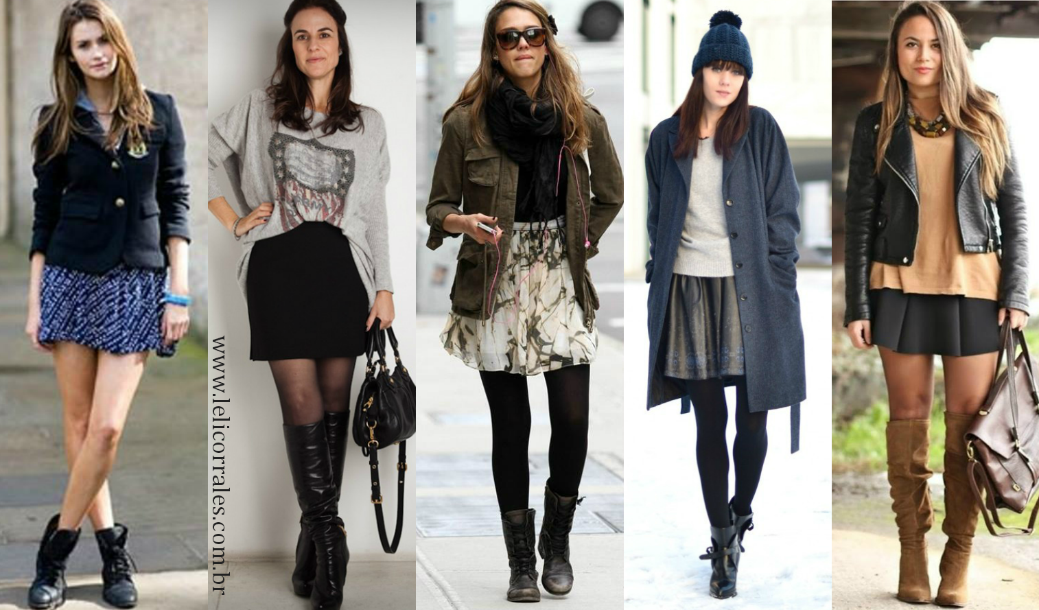 | Olhem como podemos combinar com meia calça escura e se tiverem meias trabalhadas com detalhes usem a vontade!!! Sem meia calça, em dias que não estiver tão frio! Botas de todos os estilos. Combinações como o look 1: blazer – mais formal e o look 4: jaqueta de couro – eu amo! |