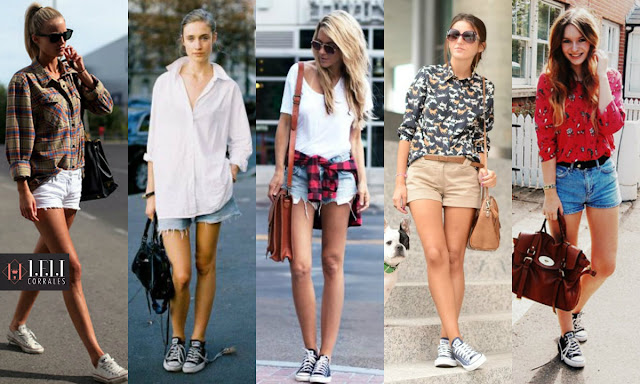 | Com shorts você pode combinar com camisas e t-shirts, variando entre colocá-la toda pra dentro, toda pra fora ou presa apenas na frente. |