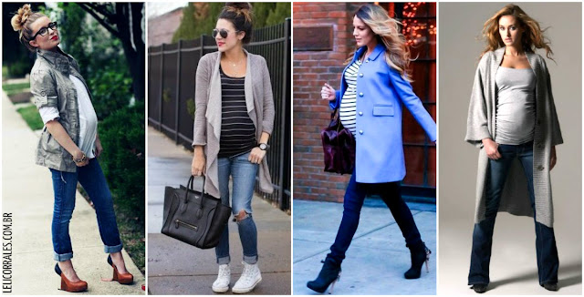 Calça jeans, bata ou camisa Dá pra perceber que não é necessário excluir a calça jeans do guarda-roupa, ao contrário, você pode investir em um extensor, ele permitirá que você continue usando a mesma calça jeans ou calça social, saia, bermuda sem precisar comprar peças novas. ![]() Calça jeans + t-shirt Pegue um modelo que cubra toda a barriga, abuse das estampas e cores, jogue por cima uma jaqueta, trend coat, cardigã ou casaco de lã e arrase! 🙌